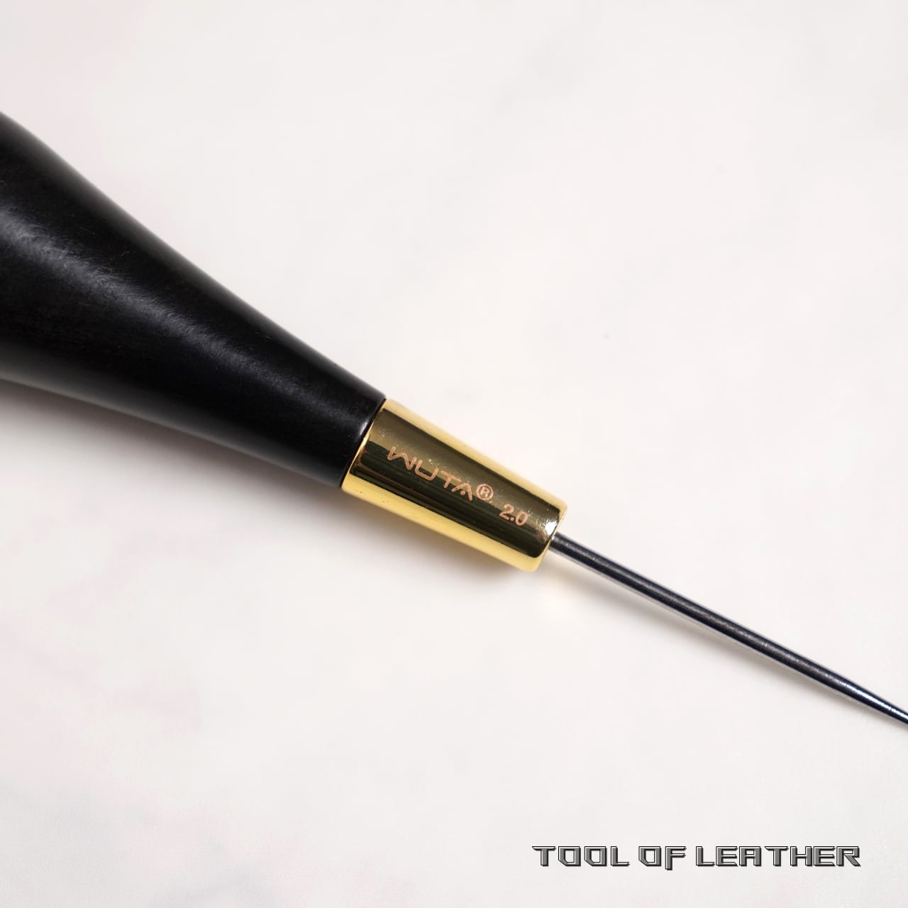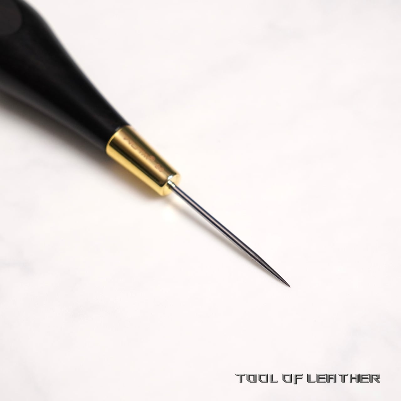 軸の根本部分の太さが2.0mmでそこから次第に細くなっています。主な用途は型紙のケガキやステッチの突き目などです。軸の太い丸錐だとステッチを広げすぎてしまうため削って細くする必要がありますがこの丸目打ちは細く鋭利に磨かれているので無加工で使えます。