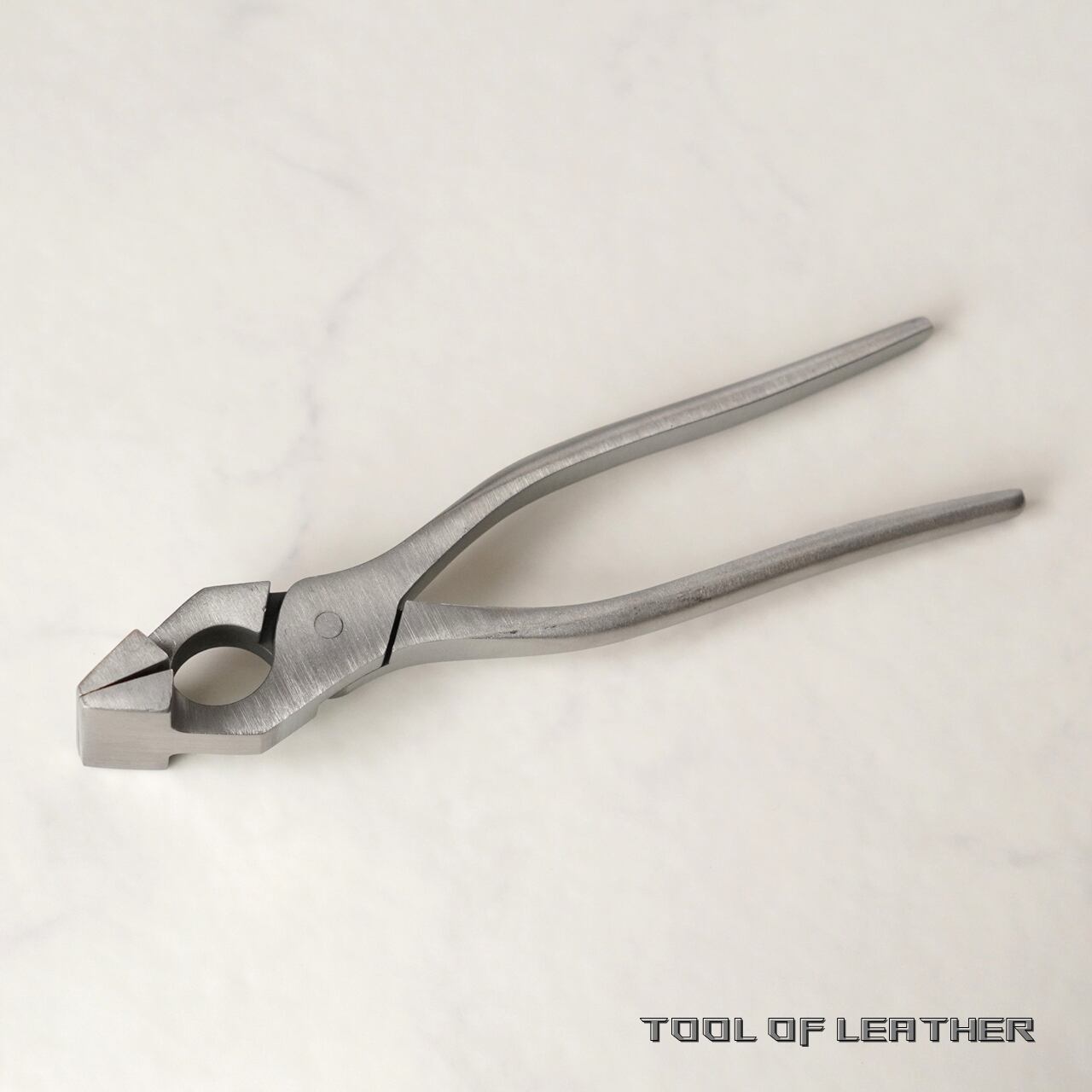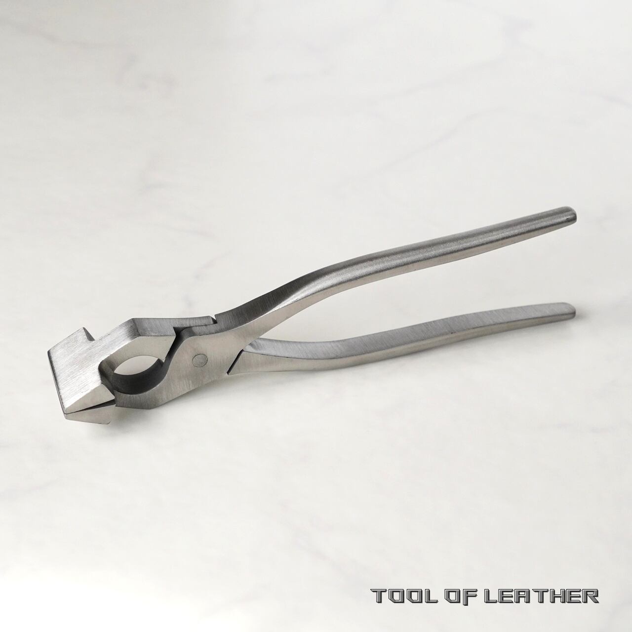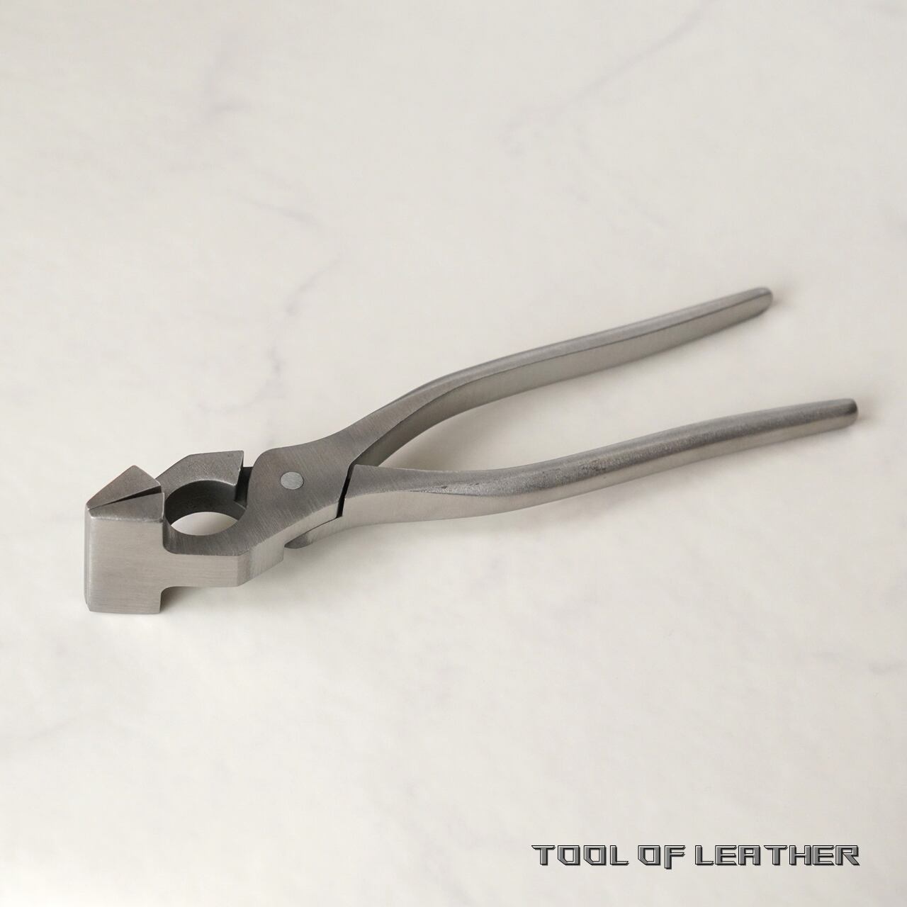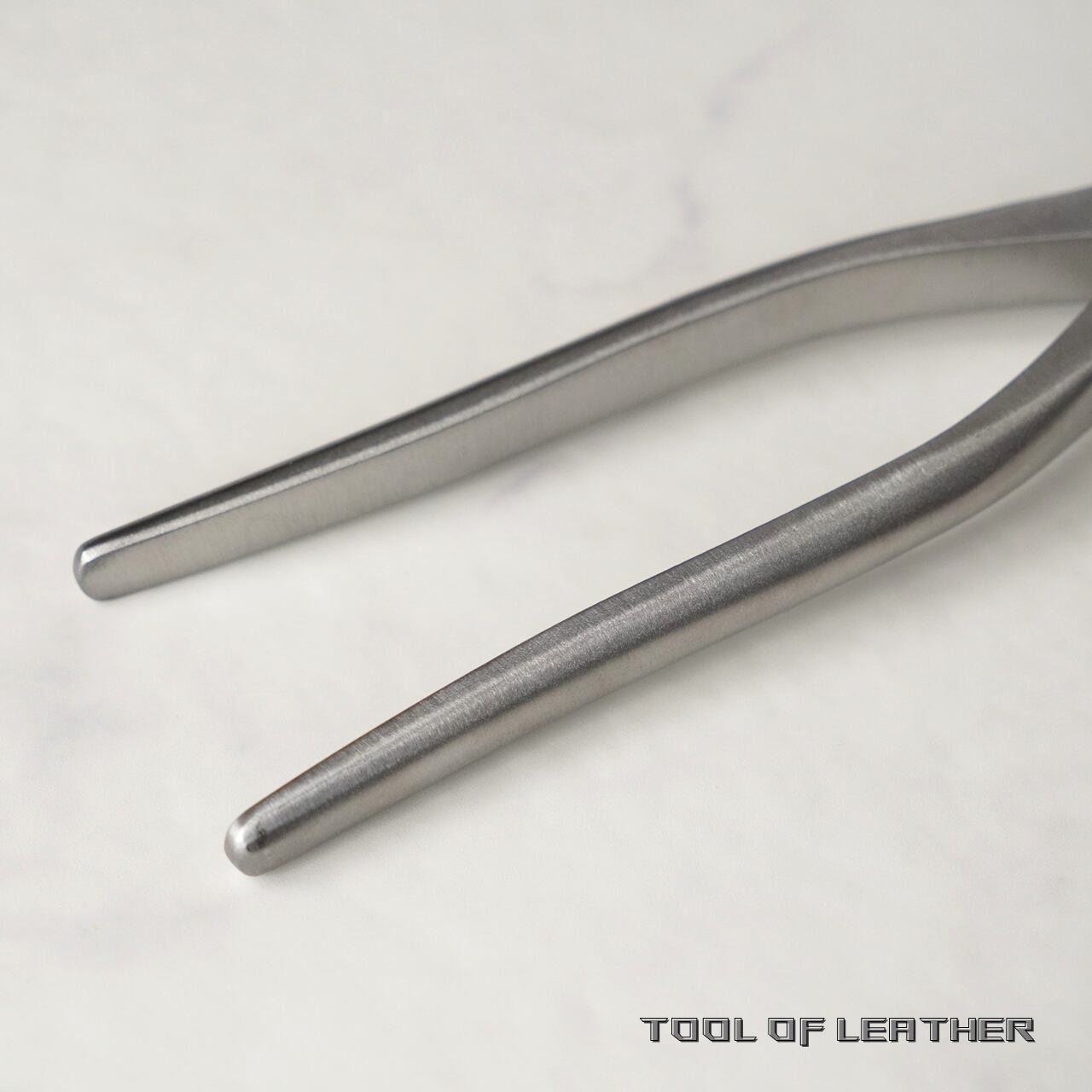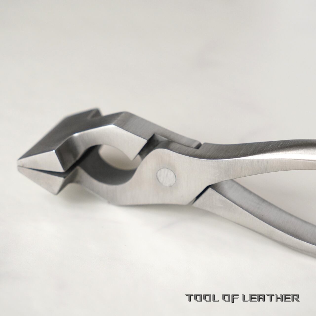 鞄の口元の圧着などに使用するステンレス製のやっとこです。圧着部分はやすりなどで面取りするか革を貼ってからお使いください。鉄製に黒い塗装の従来型との違いは錆びにくい事とバネが仕込まれていない事です。